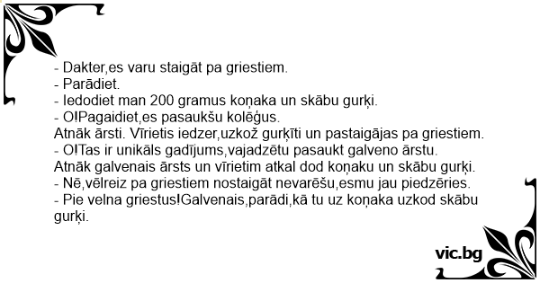 Atnāk galvenais ārsts un vīrietim atkal dod koņaku un skābu gurķi.