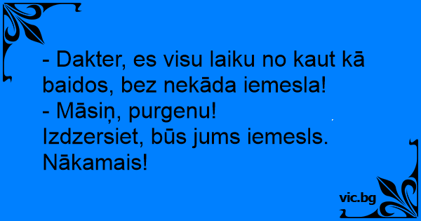 - Dakter, es visu laiku no kaut kā baidos, bez nekāda iemesla!