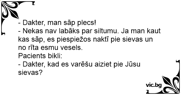 - Dakter, kad es varēšu aiziet pie Jūsu sievas?