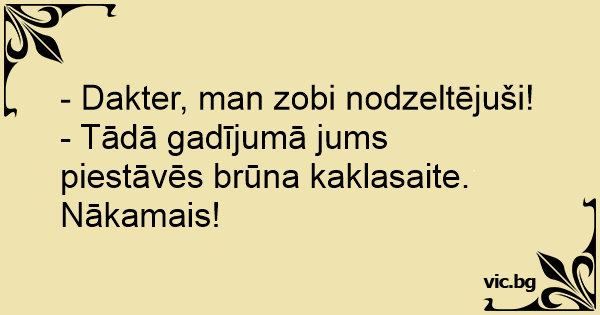 - Dakter, man zobi nodzeltējuši!