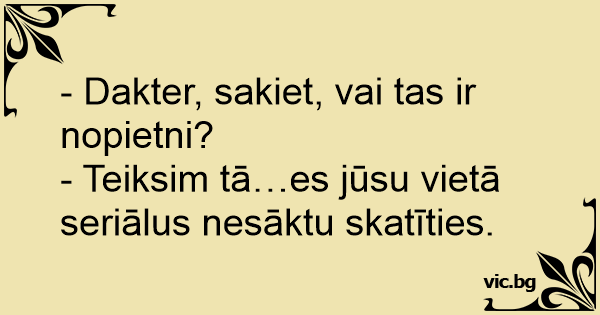 - Teiksim tā…es jūsu vietā seriālus nesāktu skatīties.