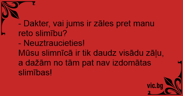 Mūsu slimnīcā ir tik daudz visādu zāļu, a dažām no tām pat nav izdomātas slimības!