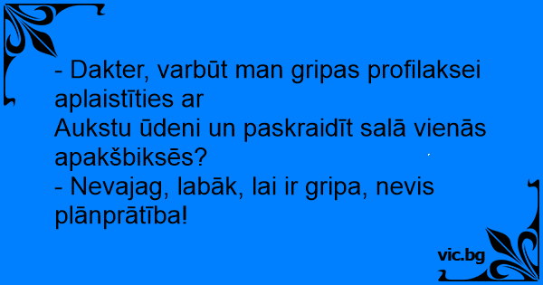 - Dakter, varbūt man gripas profilaksei aplaistīties ar