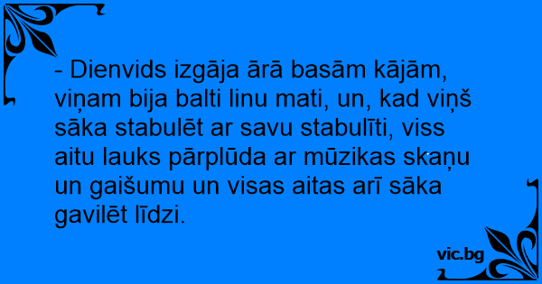 - Dienvids izgāja ārā basām kājām, viņam bija balti linu mati, un, kad viņš sāka stabulēt ar savu stabulīti, viss aitu lauks pārplūda ar mūzikas skaņu un gaišumu un visas aitas arī sāka gavilēt līdzi.