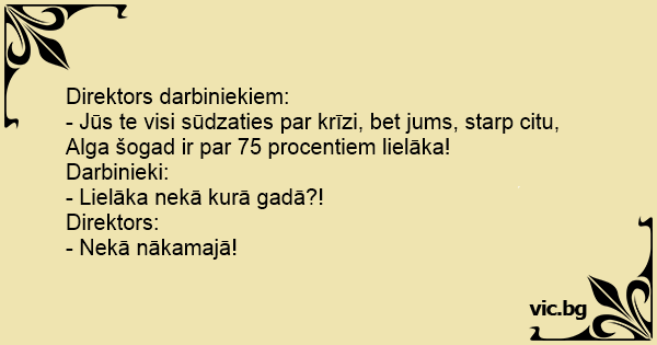 - Jūs te visi sūdzaties par krīzi, bet jums, starp citu,