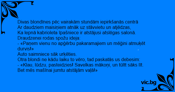 Otra blondi ne kādu laiku to vēro, tad paskatās us debesim: