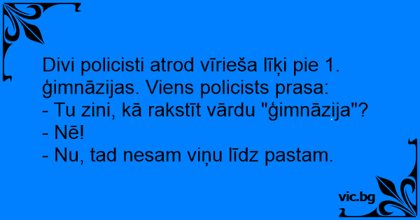 Divi policisti atrod vīrieša līķi pie 1. ģimnāzijas. Viens policists prasa:
