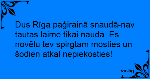 Dus Rīga paģirainā snaudā-nav tautas laime tikai naudā. Es novēlu tev spirgtam mosties un šodien atkal nepiekosties!