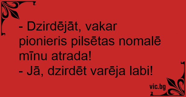 - Dzirdējāt, vakar pionieris pilsētas nomalē mīnu atrada!