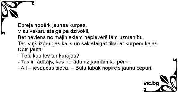 - Ai! – iesaucas sieva. – Būtu labāk nopircis jaunu cepuri.
