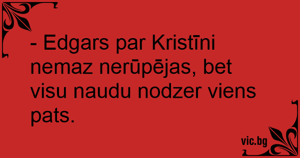 - Edgars par Kristīni nemaz nerūpējas, bet visu naudu nodzer viens pats.