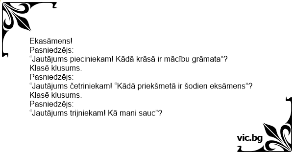 “Jautājums četriniekam! “Kādā priekšmetā ir šodien eksāmens”?