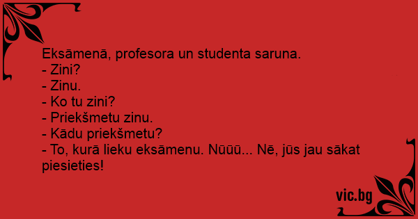 Eksāmenā, profesora un studenta saruna.