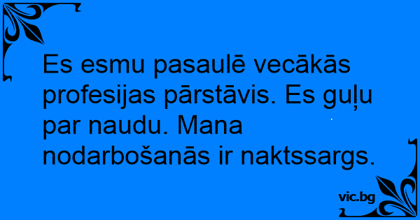 Es esmu pasaulē vecākās profesijas pārstāvis. Es guļu par naudu. Mana nodarbošanās ir naktssargs.