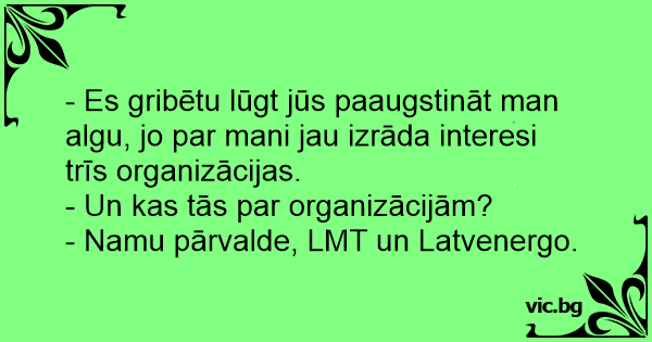 - Es gribētu lūgt jūs paaugstināt man algu, jo par mani jau izrāda interesi trīs organizācijas.