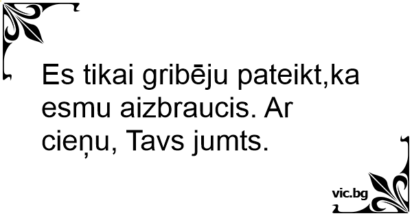 Es tikai gribēju pateikt,ka esmu aizbraucis. Ar cieņu, Tavs jumts.