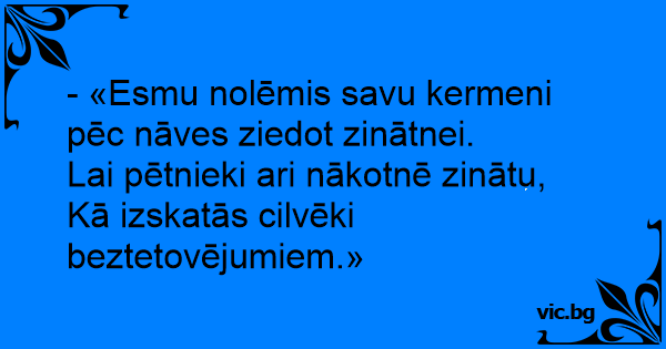 - «Esmu nolēmis savu kermeni pēc nāves ziedot zinātnei.