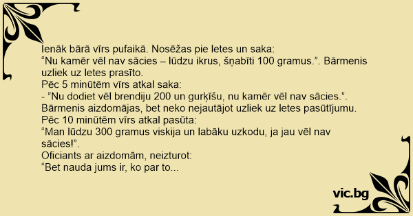 Pēc 10 minūtēm vīrs atkal pasūta:
