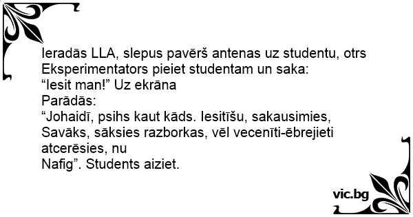 Eksperimentators pieiet studentam un saka: