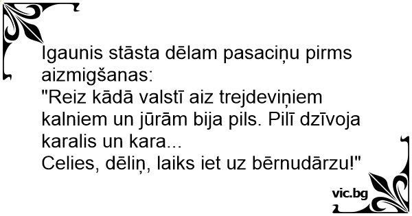 "Reiz kādā valstī aiz trejdeviņiem kalniem un jūrām bija pils. Pilī dzīvoja karalis un kara...