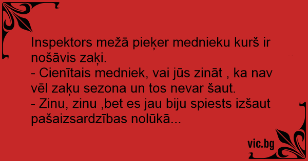 - Cienītais medniek, vai jūs zināt , ka nav vēl zaķu sezona un tos nevar šaut.
