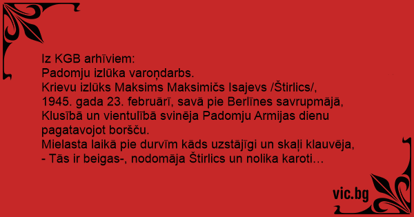 - Tās ir beigas-, nodomāja Štirlics un nolika karoti…