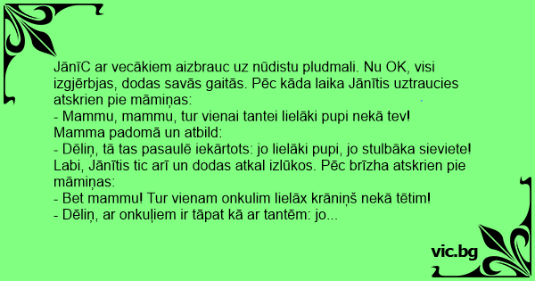 Arī ar šo atbildi Jānītis ir gluzhi apmierināts un aizskrien tālāk. Bet nepaiet ilgs laix, kad atkal aizelsies atskrien pie māmiņas: