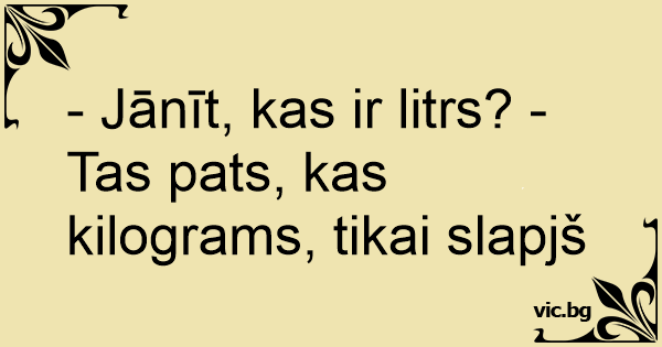- Jānīt, kas ir litrs? - Tas pats, kas kilograms, tikai slapjš