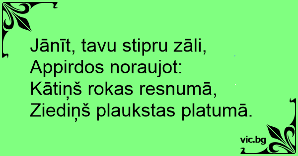 Jānīt, tavu stipru zāli,...