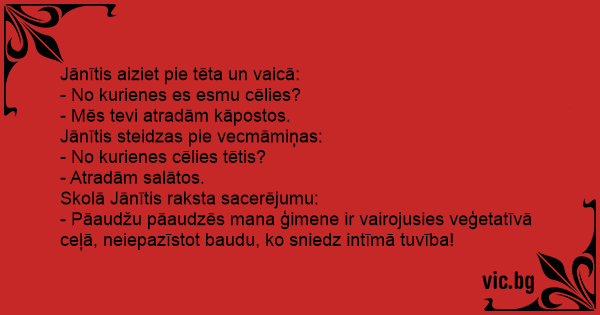 Jānītis aiziet pie tēta un vaicā: