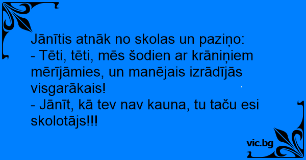 - Jānīt, kā tev nav kauna, tu taču esi skolotājs!!!