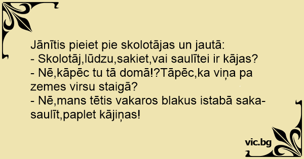 - Skolotāj,lūdzu,sakiet,vai saulītei ir kājas?