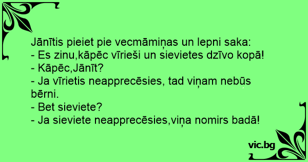Jānītis pieiet pie vecmāmiņas un lepni saka: