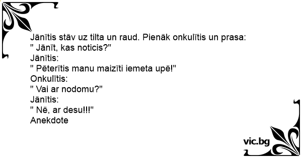 Jānītis stāv uz tilta un raud. Pienāk onkulītis un prasa:
