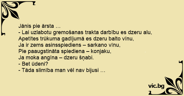 - Lai uzlabotu gremošanas trakta darbību es dzeru alu,