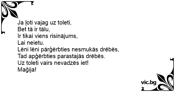 Uz toleti vairs nevadzēs iet!