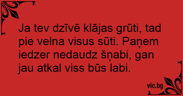 Ja tev dzīvē klājas grūti, tad pie velna visus sūti. Paņem iedzer nedaudz šņabi, gan jau atkal viss būs labi.