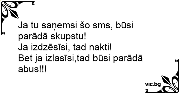 Ja tu saņemsi šo sms, būsi parādā skupstu!