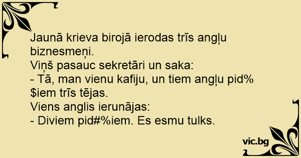 - Tā, man vienu kafiju, un tiem angļu pid%$iem trīs tējas.