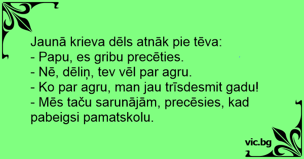 - Mēs taču sarunājām, precēsies, kad pabeigsi pamatskolu.