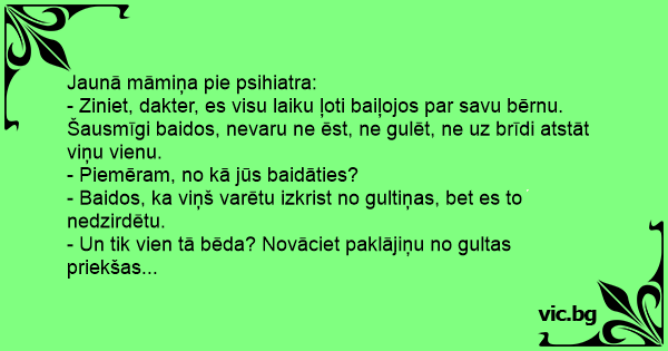 - Ziniet, dakter, es visu laiku ļoti baiļojos par savu bērnu. Šausmīgi baidos, nevaru ne ēst, ne gulēt, ne uz brīdi atstāt viņu vienu.
