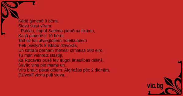 3. Kādā ģimenē 9 bērni. Sieva...