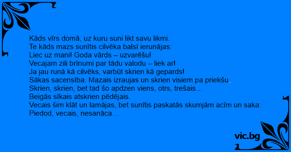 Vecais šim klāt un lamājas, bet sunītis paskatās skumjām acīm un saka:
