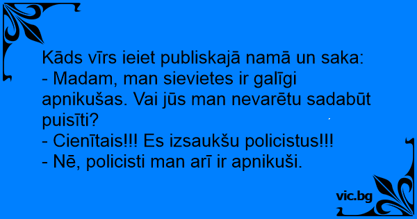 Kāds vīrs ieiet publiskajā namā un saka: