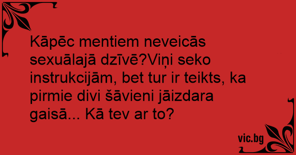 Kāpēc mentiem neveicās sexuālajā dzīvē?Viņi seko instrukcijām, bet tur ir teikts, ka pirmie divi šāvieni jāizdara gaisā... Kā tev ar to?