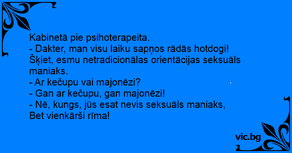 - Dakter, man visu laiku sapņos rādās hotdogi!