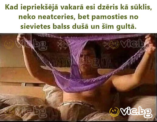 Кога вечерта пред тоа си пиел како сунѓер, не памтиш ништо, ама се будиш со некој женски глас што пее во бањата и овие во креветот.