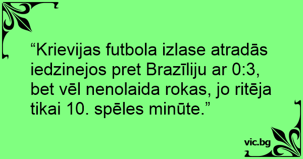 “Krievijas futbola izlase atradās iedzinejos pret Brazīliju ar 0:3, bet vēl nenolaida rokas, jo ritēja tikai 10. spēles minūte.”