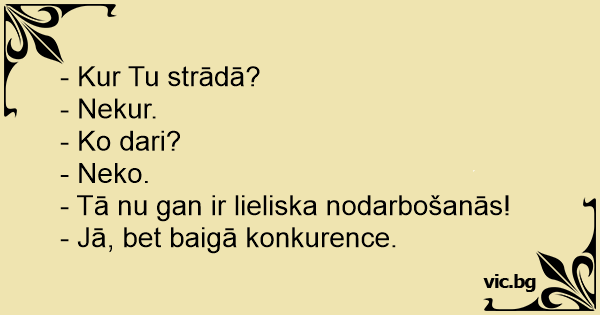 3. - Kur Tu strādā? - Nekur. -...