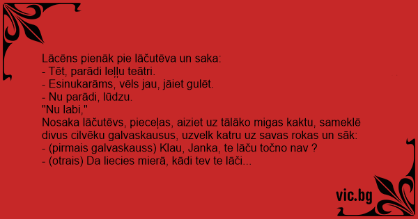- (otrais) Da liecies mierā, kādi tev te lāči...